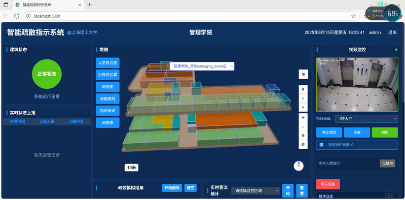 暑期,房志明教授、黄中意副教授带领团队完成人群智慧管理与应急疏散平台和“多人在线突发事件推演平台”的升级工作。人群智慧管理与应急疏散平台通过多源数据融合与物联网部署优化,实现动态热力图生成、实施规划最优疏散路径规划、云端-现场协同引导三大突破。本次升级一方面打通数据流转通道,实现全量数据的接入、处理和可视化展示;另一方面,全面开展自主研发替换,软硬件模块的自主开发占比提升至85%,为公共场所的人群管理和应急疏散提供智能化解决方案。