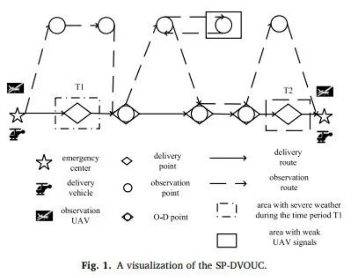 协同调度突破:实现动态场景与大规模集群的智能控制在系统规划的指导下,面对更为复杂的动态环境实时调度方面,也研究取得了关键技术进展。陈理老师针对灾后灾害点动态新增、需求信息不确定、天气异常难观测的挑战,提出了无人机-车辆协同调度模型。通过混合整数规划与滚动时域优化,实现观测与配送的实时联动,有效提升了救援配送效率与人员安全性。